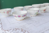Our collection of Vintage Crockery comprises of charming pieces that have been lovingly accumulated through many a treasure hunt in British antique shops. All our pieces are authentic bone china that has been hand-picked over the years and come in a multitude of colours and prints. You are sure to find what you are looking for that will match your decor scheme and style to make your special occasion all the more elegant.